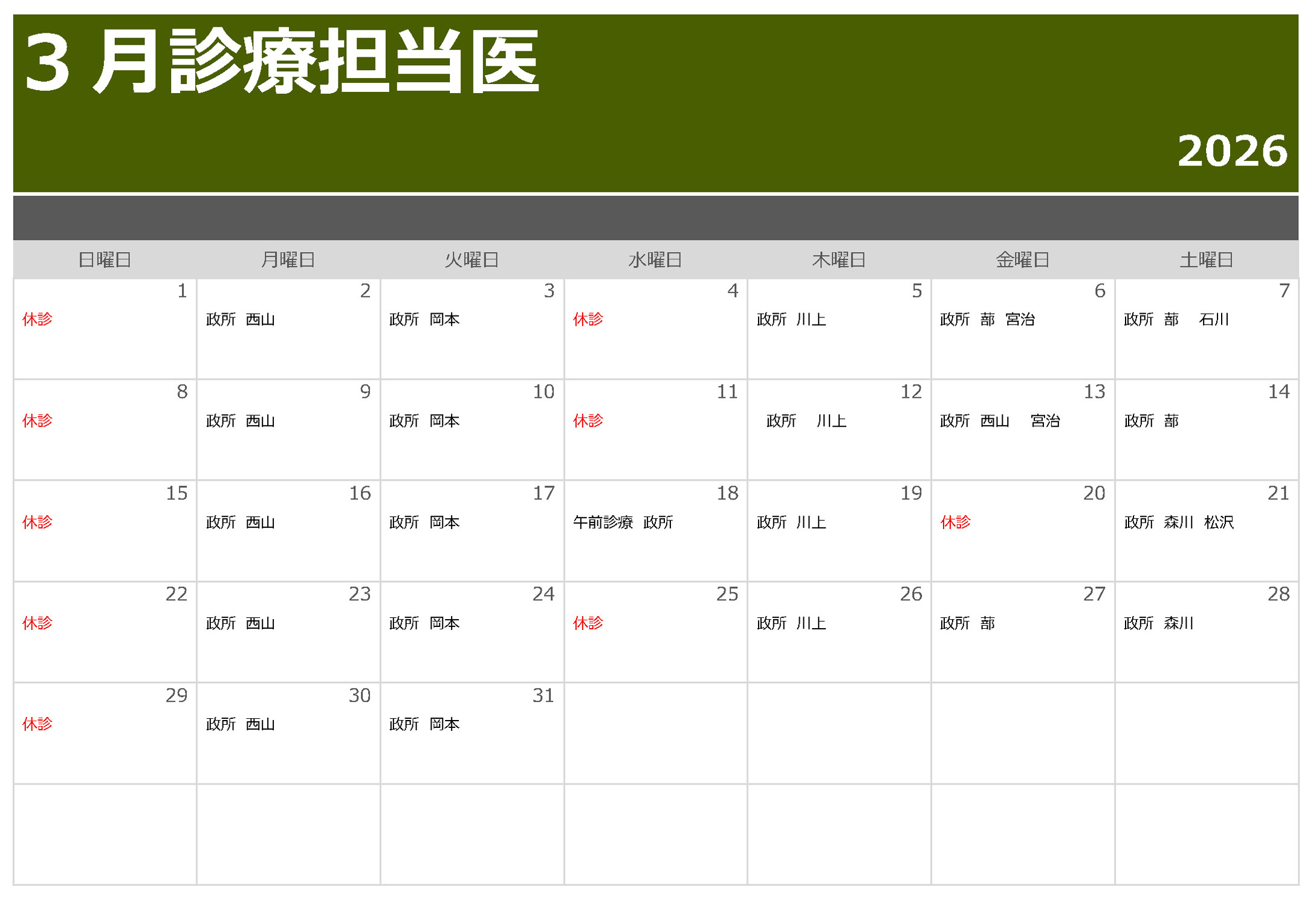 2026年3月の外来診療担当医のお知らせです。